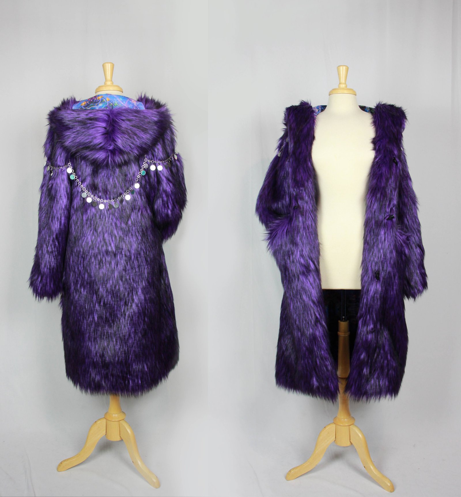 Let Chromatiicat bring your vision to life with a custom-designed coat that’s as unique as you are! Whether you’re heading to the playa, music festival, or any celebration, Chromatiicat will transform your ideas into a one-of-a-kind creation. Every coat is fully customizable — from bold fabrics to eye-catching linings and playful extras. These photos are just a peek into the possibilities — your custom coat can go wherever your imagination does.