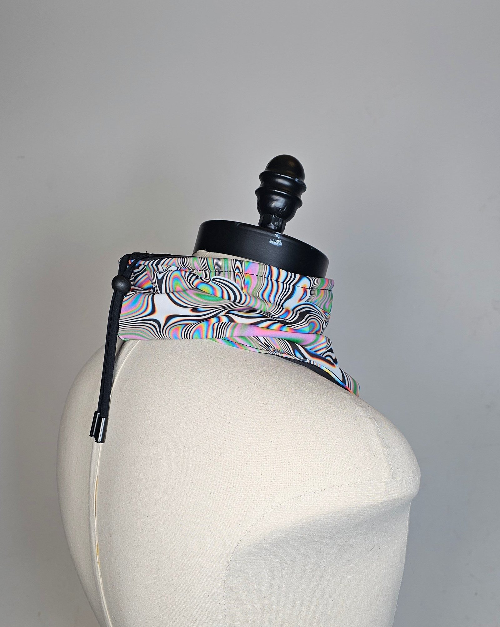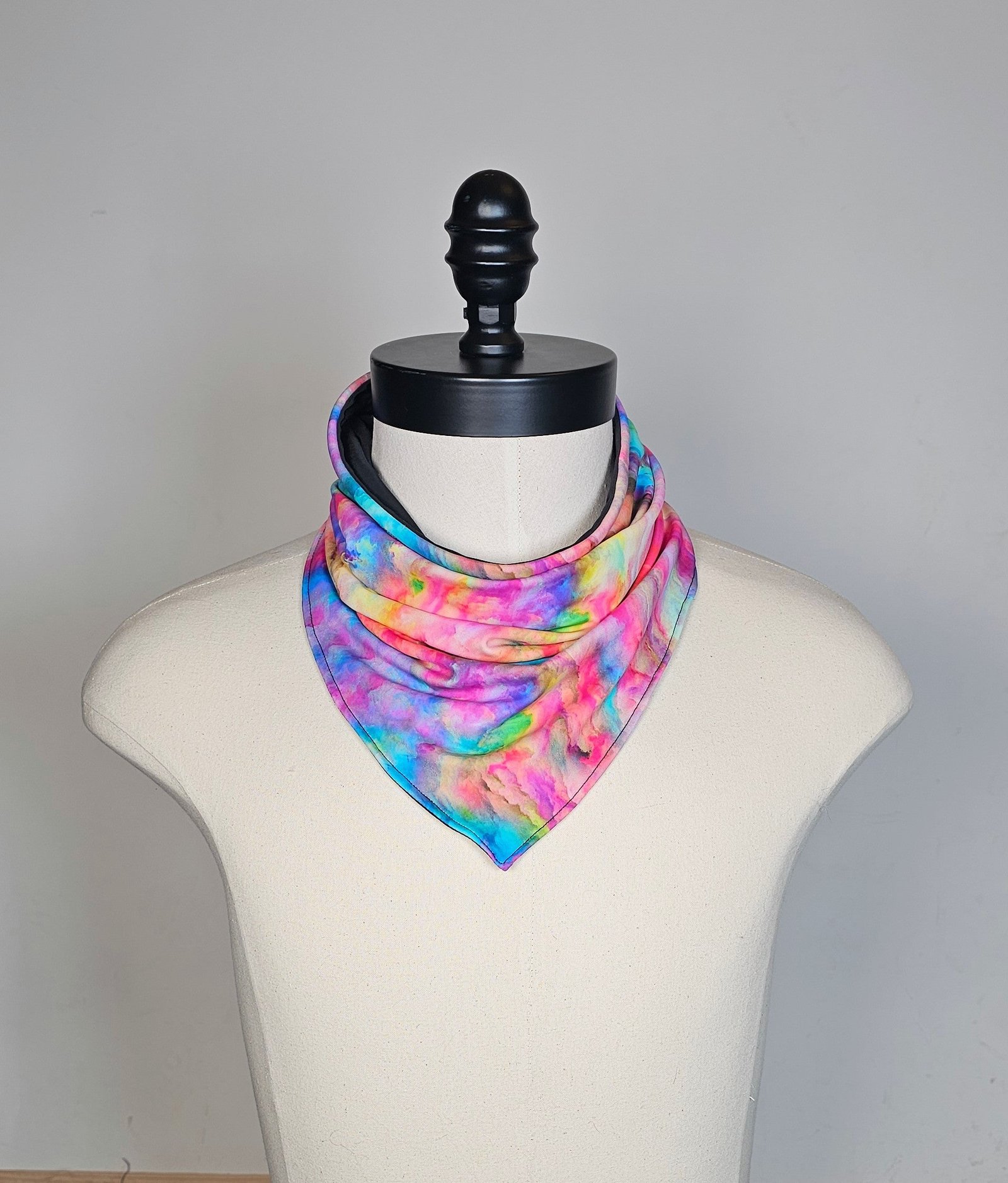 Designed for festival adventures and dusty playa days, this piece blends style and function in true Chromatiicat fashion. It looks like a bandana but wears like a neck gaiter – keeping you protected from dust while adding a bold touch to your outfit.