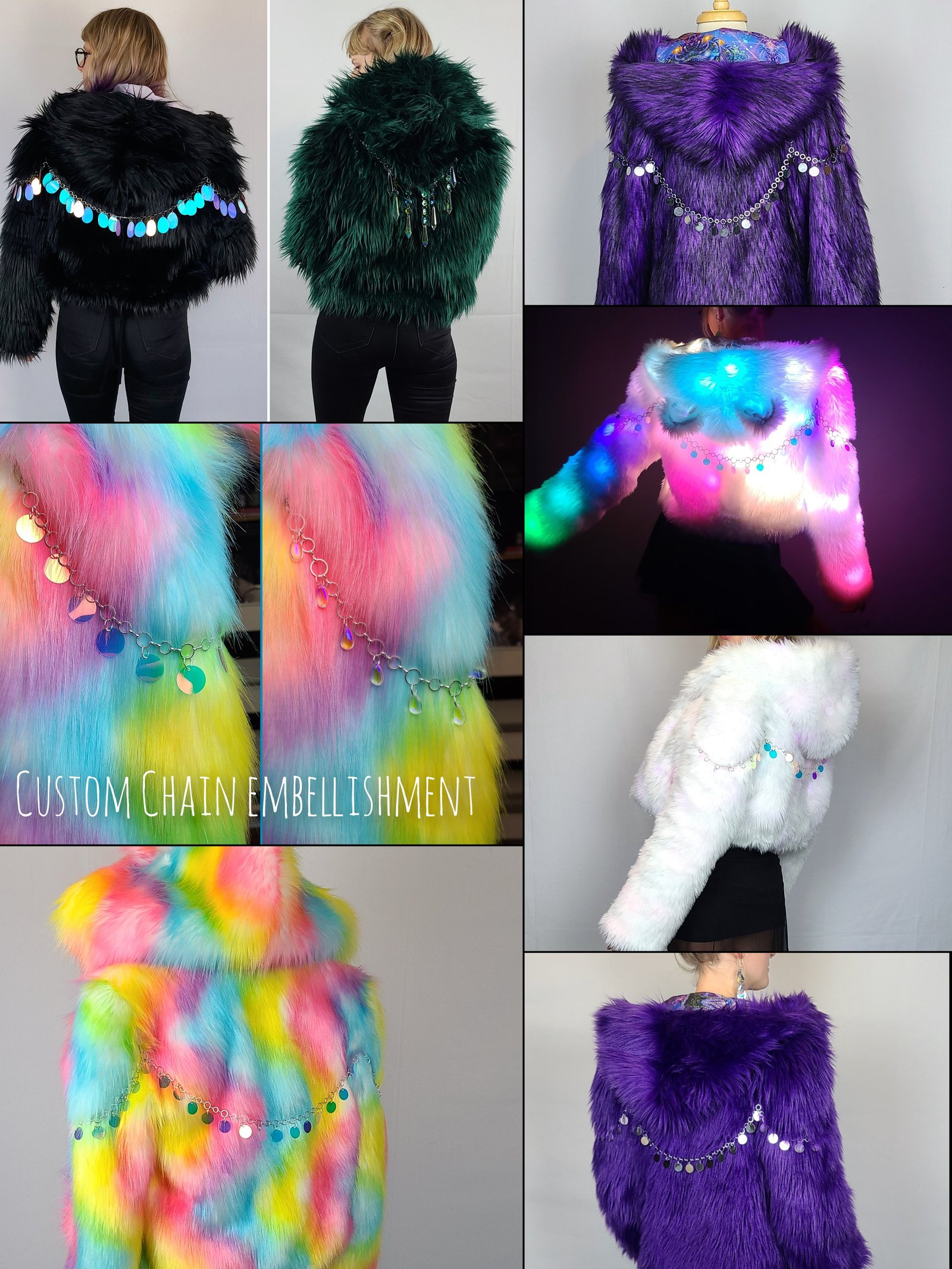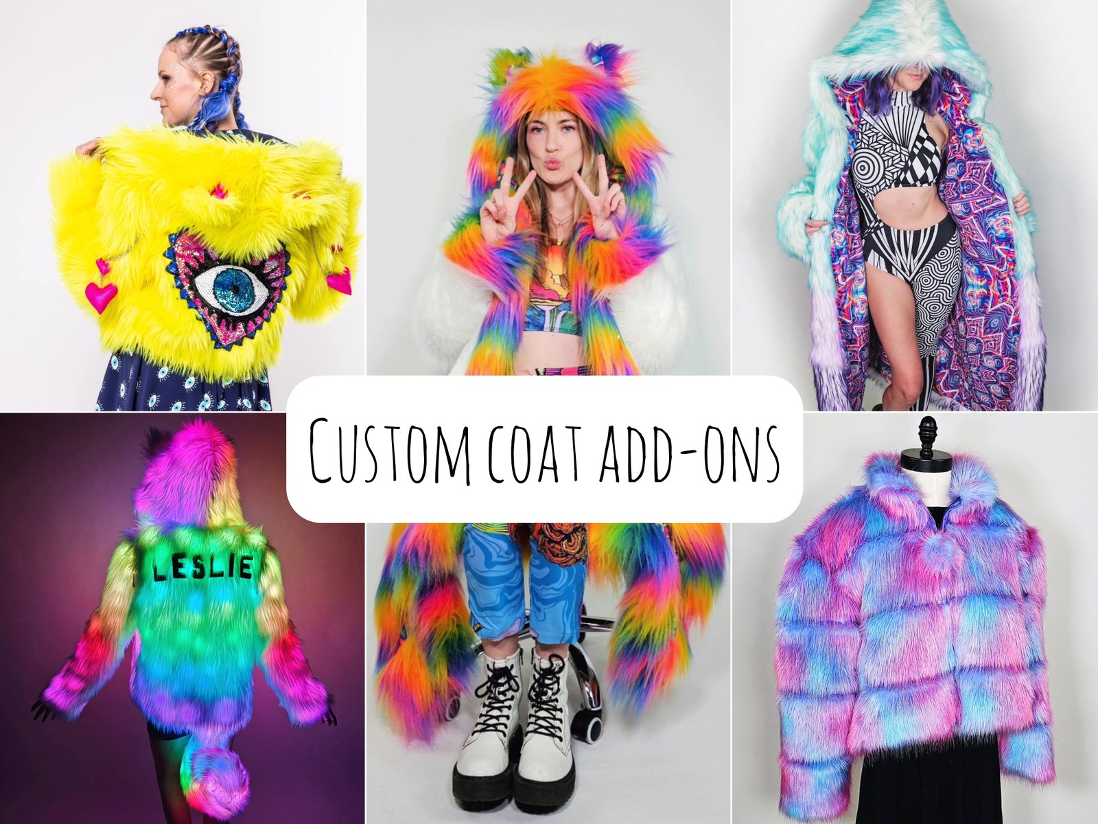 At Chromatiicat, we love creating unique, custom festival coats – and now you can make yours even more magical with special add-on details. These customization options require extra hours of detailed work and/or additional materials, so this separate listing helps with that.
