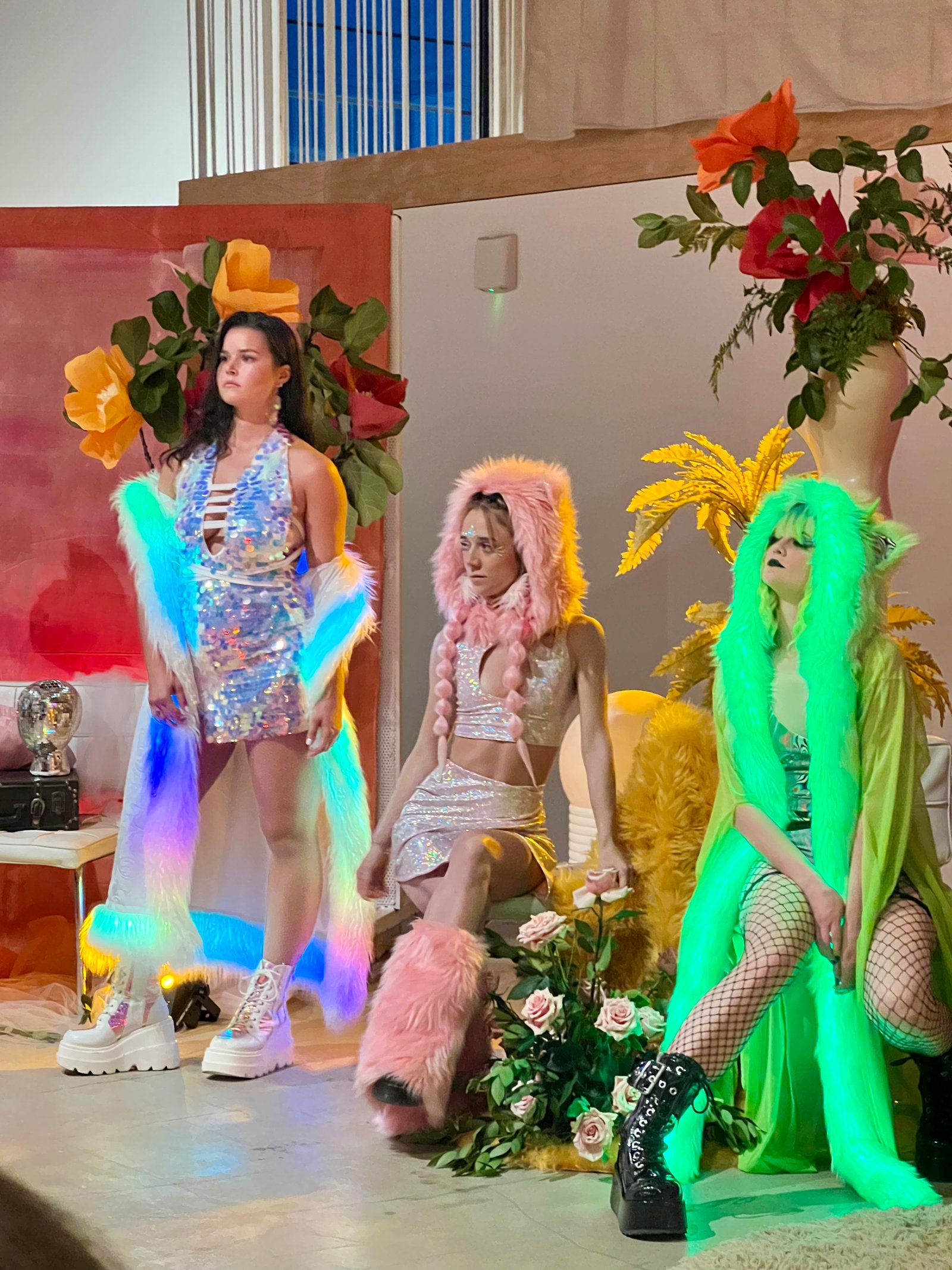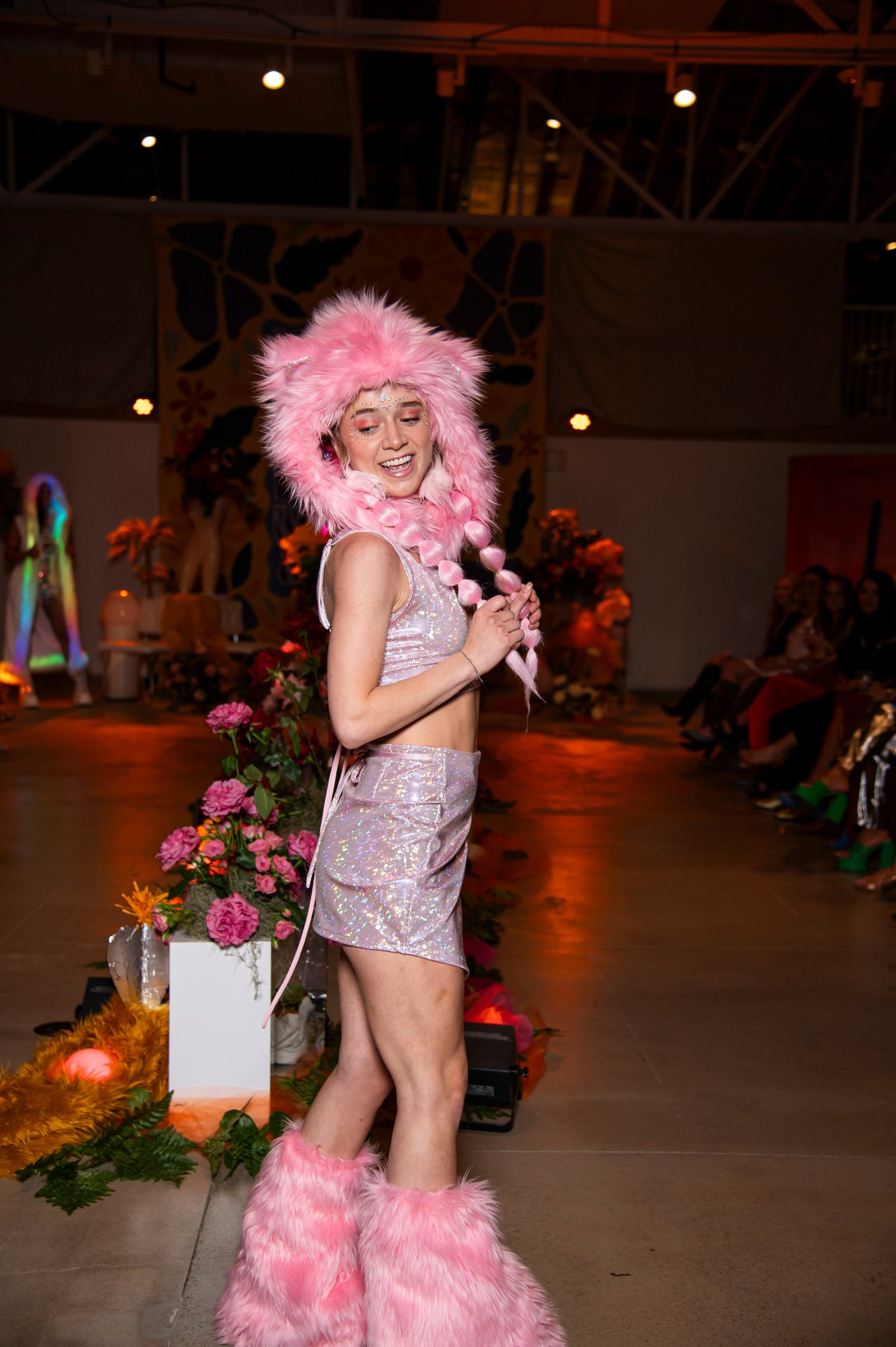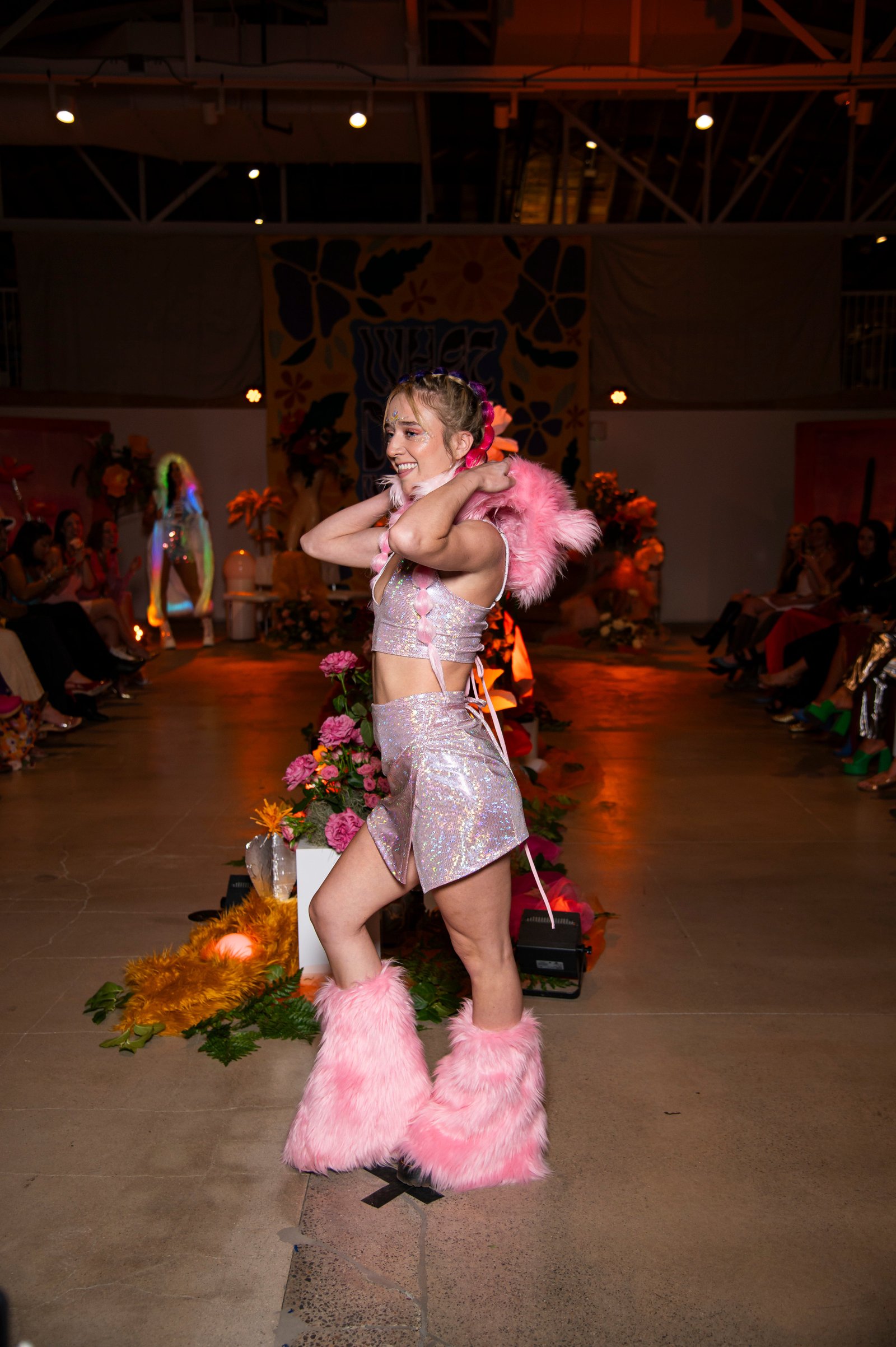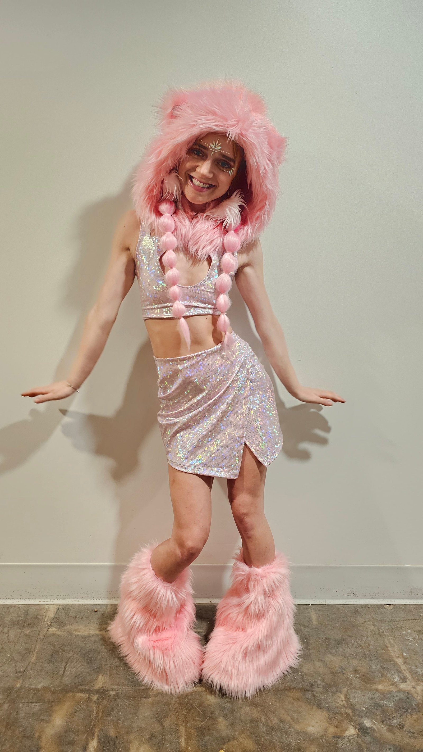 Complete the look with our matching pink faux fur hood and fluffies set for the ultimate coordinated festival or rave outfit.