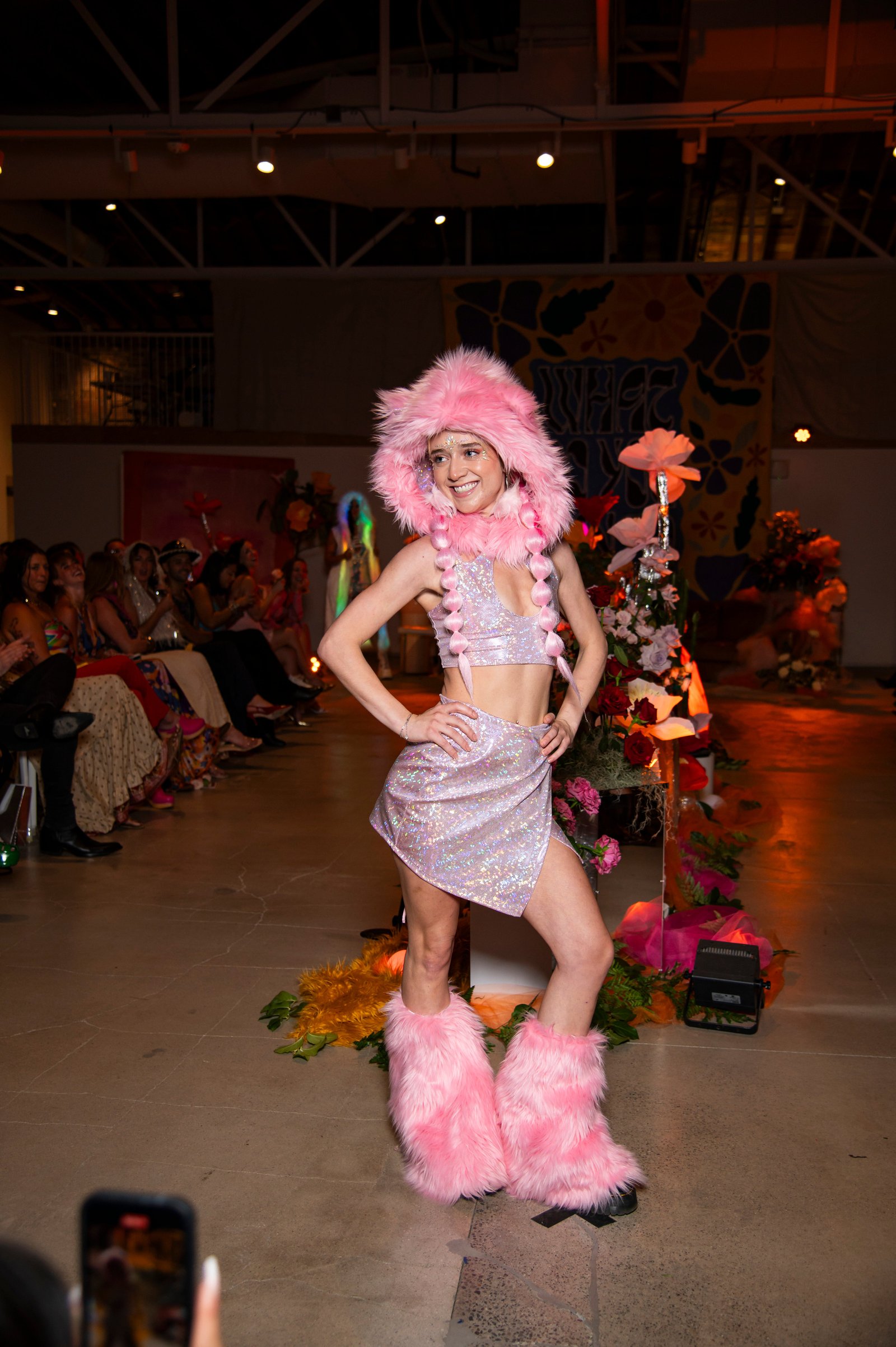 Turn heads in this light pink festival set, originally designed for one of our past fashion shows. Both pieces are size-adjustable and best suited for sizes XS–S, making it easy to customize your perfect fit.